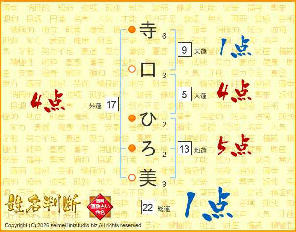 寺口ひろ美さんの外運は17画の4点!