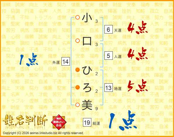 小口ひろ美さんの総運は19画の1点!