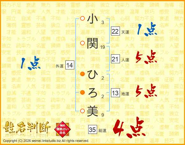 小関ひろ美さんの総運は35画の4点!