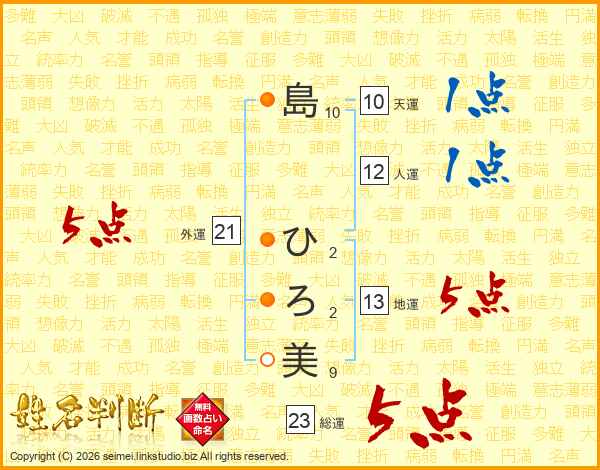 島ひろ美さんの外運は21画の5点!
