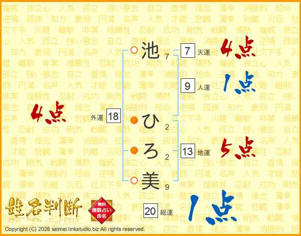 池(7画) ひ(2画)ろ(2画)美(9画)