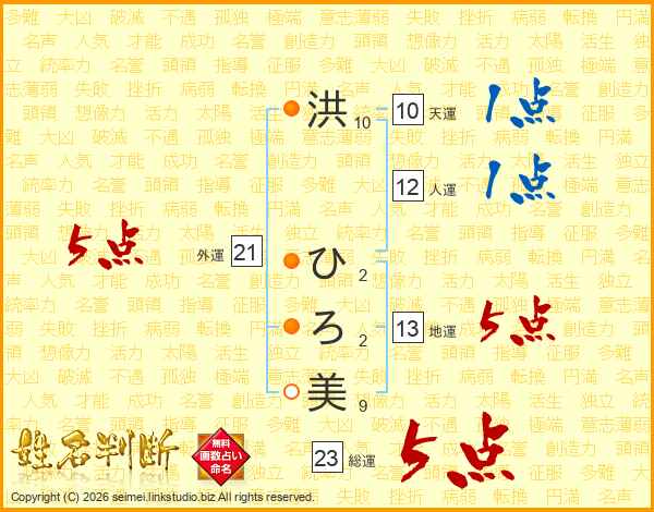 洪ひろ美さんの総運は23画の5点!