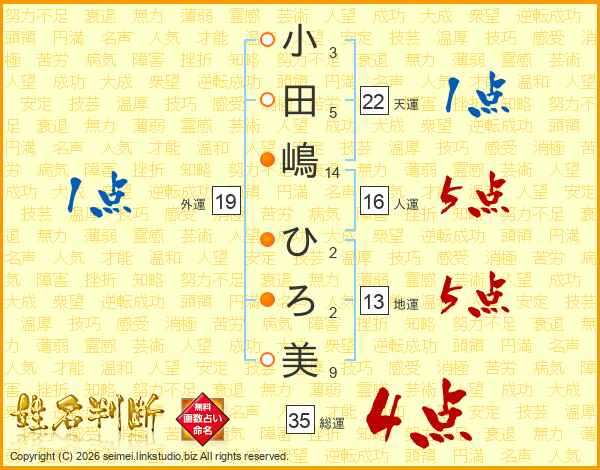 小田嶋ひろ美さんの総運は35画の4点!