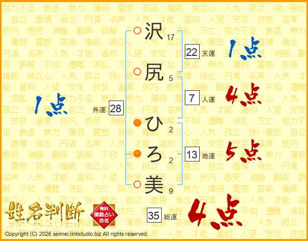 沢(17画)尻(5画) ひ(2画)ろ(2画)美(9画)
