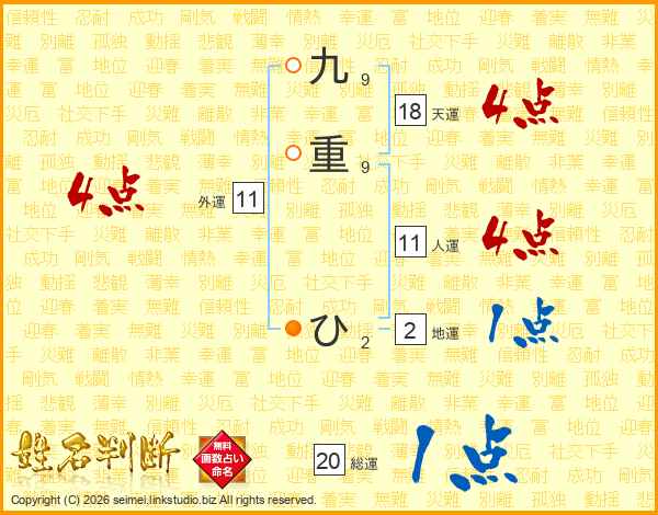九重ひさんの人運は11画の4点!