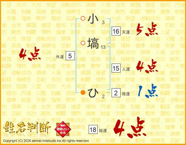 小塙ひさんの総運は18画の4点!