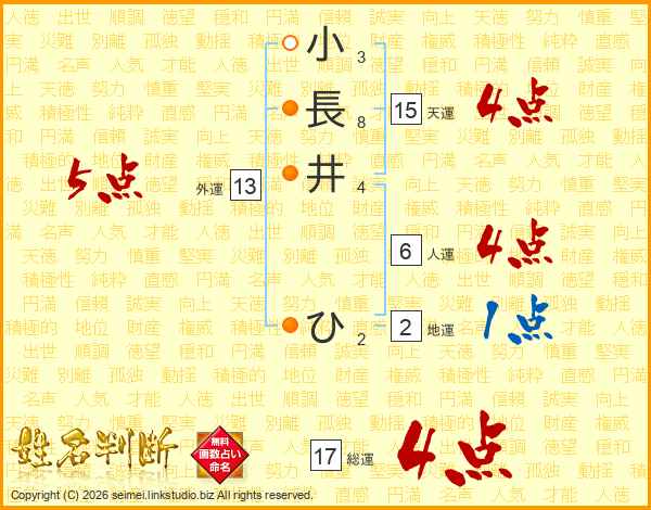 小長井ひさんの総運は17画の4点!