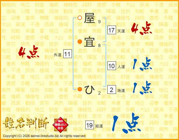 屋宜ひさんの総運は19画の1点!