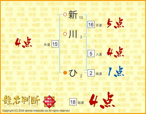 新川ひさんの総運は18画の4点!