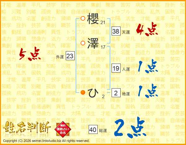 櫻澤ひさんの天運は38画の4点!