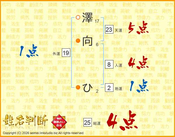 澤向ひさんの総運は25画の4点!