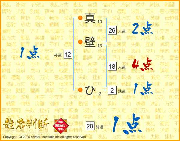 真壁ひさんの天運は26画の2点!
