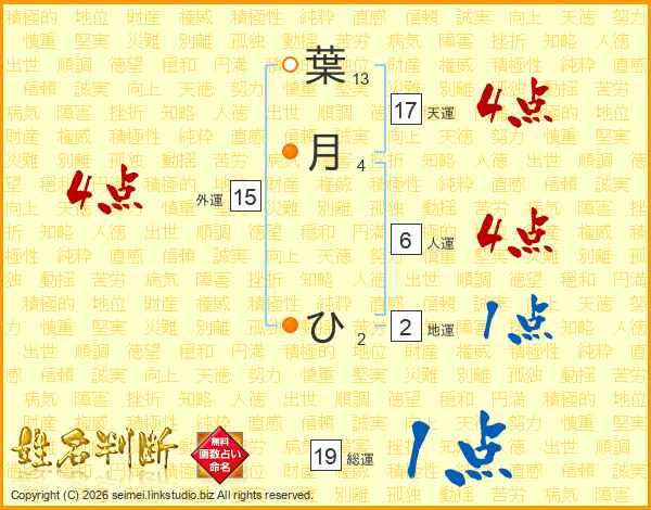 葉月ひさんの総運は19画の1点!