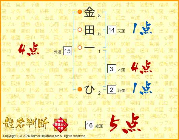 金田一ひさんの天運は14画の1点!