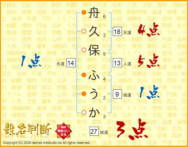 舟久保ふうかさんの総運は27画の3点!