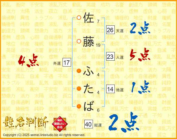 佐藤ふたばさんの総運は40画の2点!
