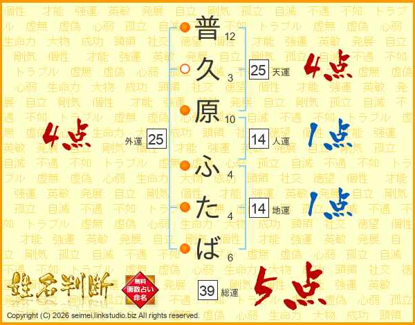 普久原ふたばさんの総運は39画の5点!