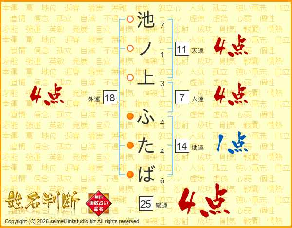 池ノ上ふたばさんの総運は25画の4点!