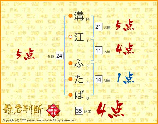 溝(14画)江(7画) ふ(4画)た(4画)ば(6画)