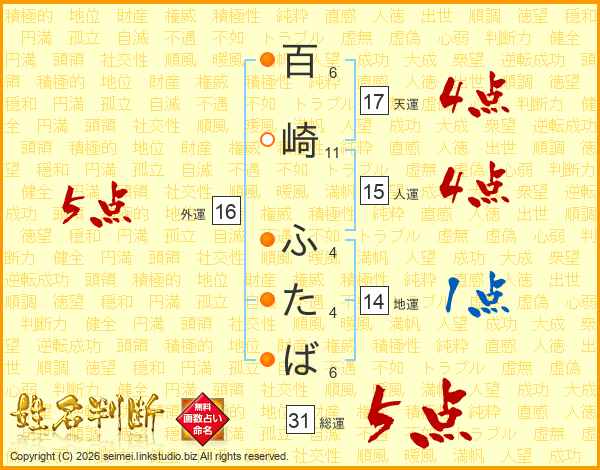 百崎ふたばさんの総運は31画の5点!