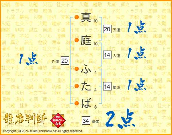 真庭ふたばさんの総運は34画の2点!