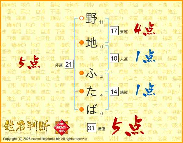 野地ふたばさんの総運は31画の5点!