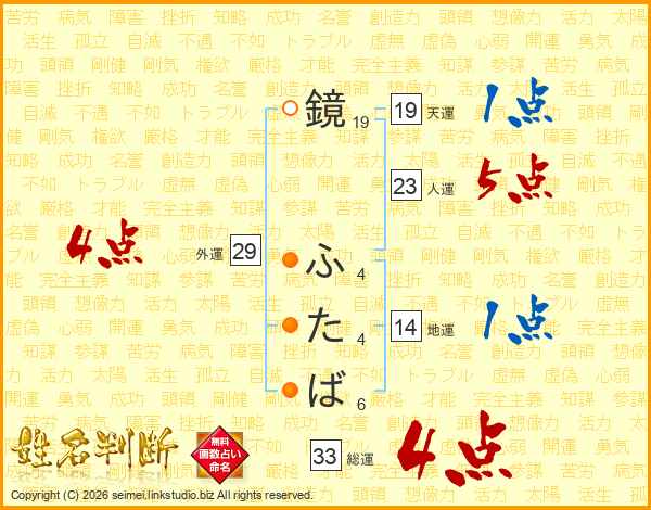 鏡ふたばさんの総運は33画の4点!