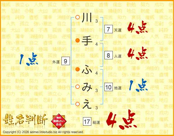 川手ふみえさんの総運は17画の4点!