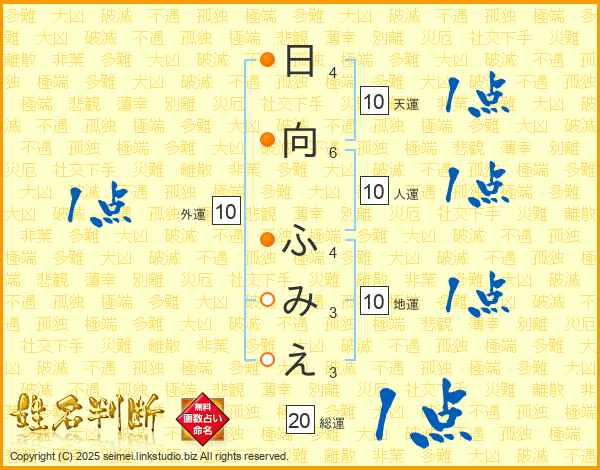 日(4画)向(6画) ふ(4画)み(3画)え(3画)