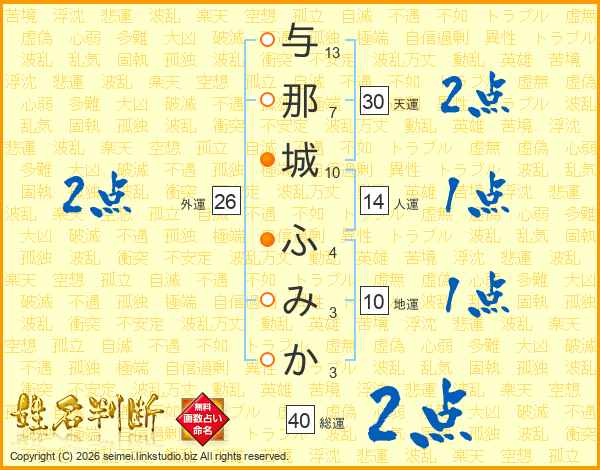 与(13画)那(7画)城(10画) ふ(4画)み(3画)か(3画)