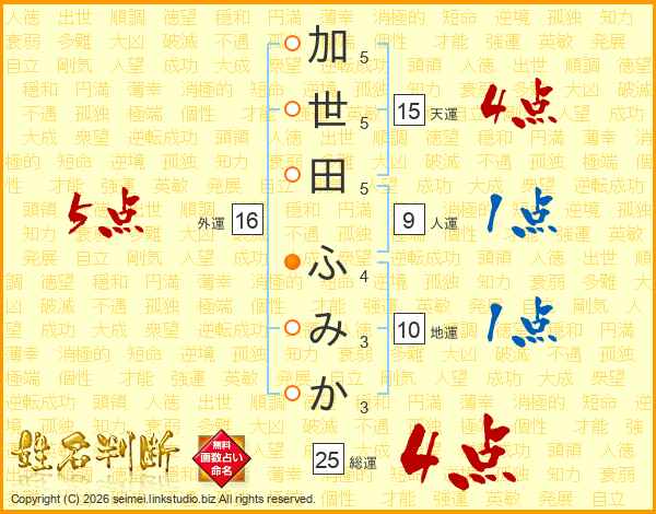 加(5画)世(5画)田(5画) ふ(4画)み(3画)か(3画)