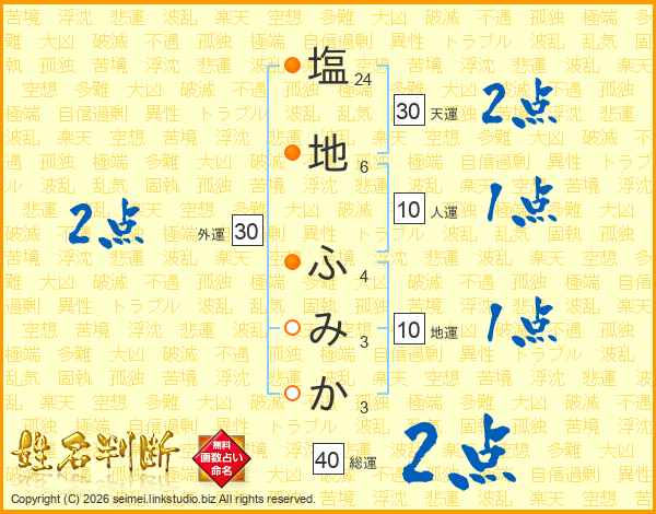 塩(24画)地(6画) ふ(4画)み(3画)か(3画)