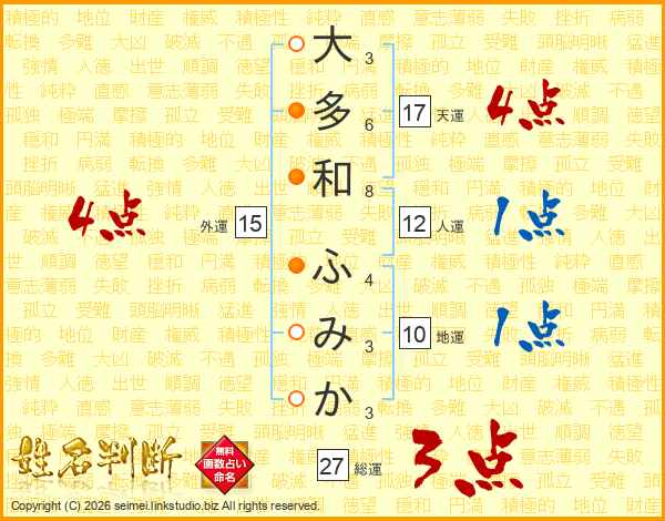 大多和ふみかさんの総運は27画の3点!