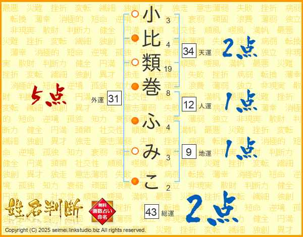 小(3画)比(4画)類(19画)巻(8画) ふ(4画)み(3画)こ(2画)