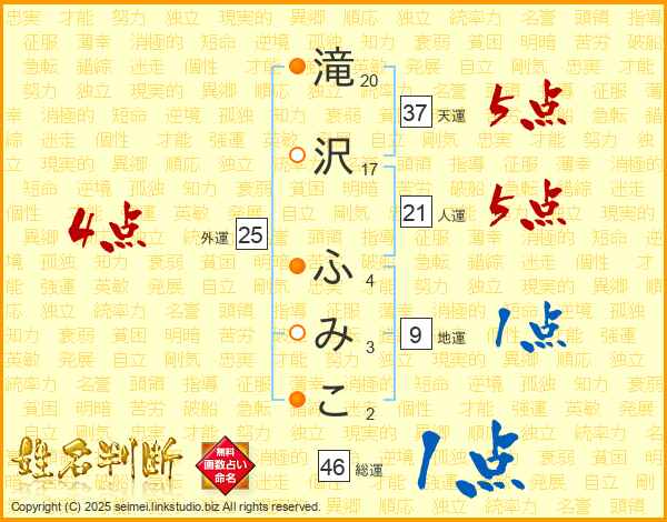 滝沢ふみこさんの天運は37画の5点!