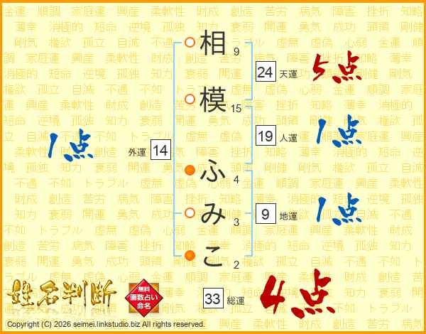 相模ふみこさんの総運は33画の4点!