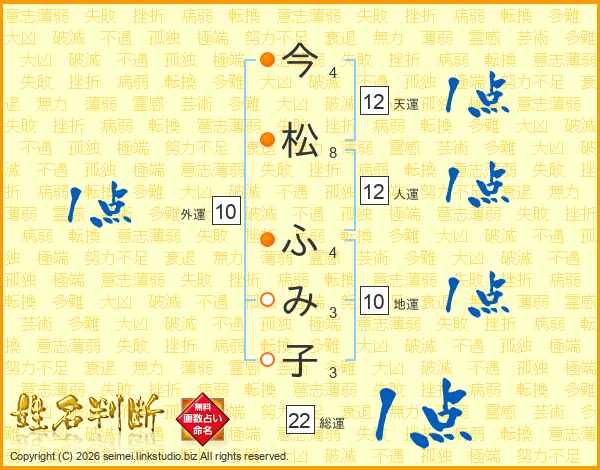 今松ふみ子さんの総運は22画の1点!