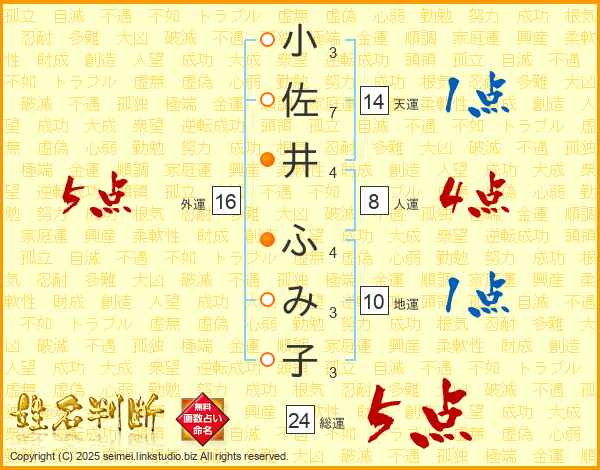 小(3画)佐(7画)井(4画) ふ(4画)み(3画)子(3画)
