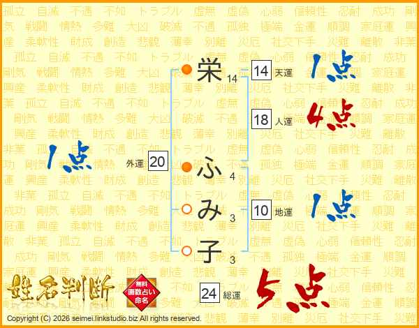 栄(14画) ふ(4画)み(3画)子(3画)