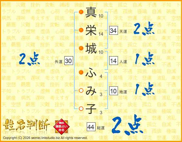 真(10画)栄(14画)城(10画) ふ(4画)み(3画)子(3画)