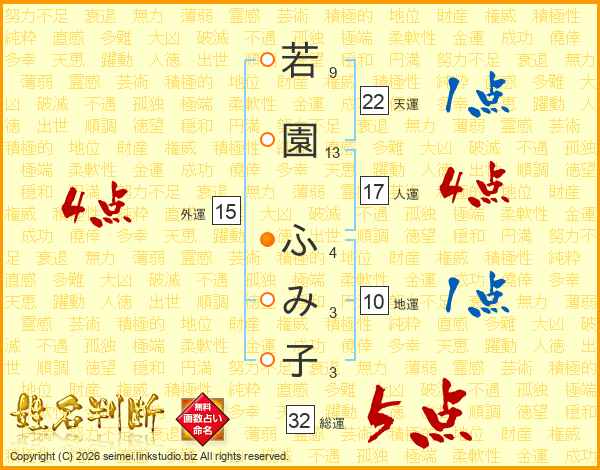 若園ふみ子さんの総運は32画の5点!