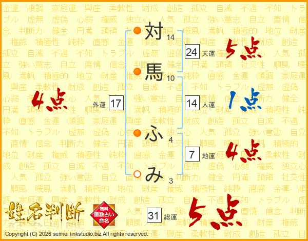 対馬ふみさんの総運は31画の5点!
