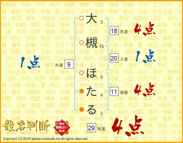大(3画)槻(15画) ほ(5画)た(4画)る(2画)