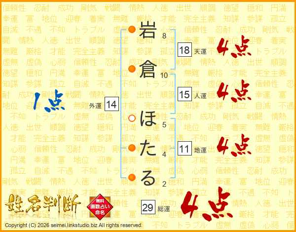 岩倉ほたるさんの総運は29画の4点!