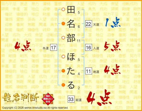 田名部ほたるさんの総運は33画の4点!