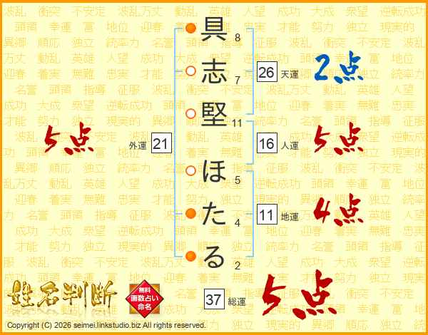 具志堅ほたるさんの総運は37画の5点!