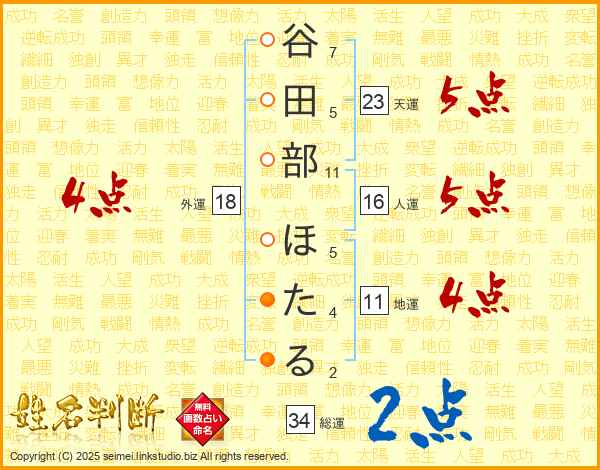 谷(7画)田(5画)部(11画) ほ(5画)た(4画)る(2画)