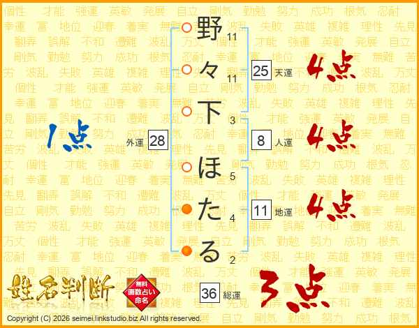 野々下ほたるさんの天運は25画の4点!