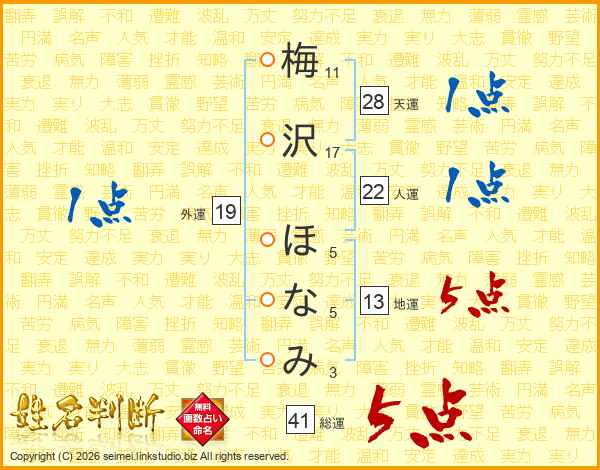 梅(11画)沢(17画) ほ(5画)な(5画)み(3画)