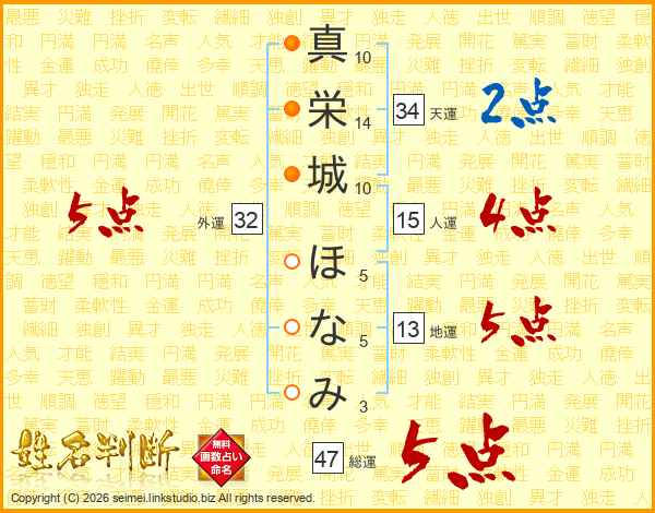 真(10画)栄(14画)城(10画) ほ(5画)な(5画)み(3画)